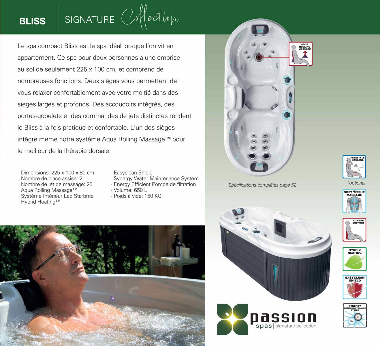 ✅ Jets de massage : 25 jets + massage Soft Air + Aqua Rolling Massage