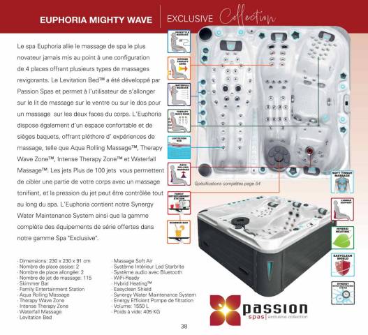 ✅ Jets de massage : 115 jets + massage Soft Air + Aqua Rolling Massage + place lévitation